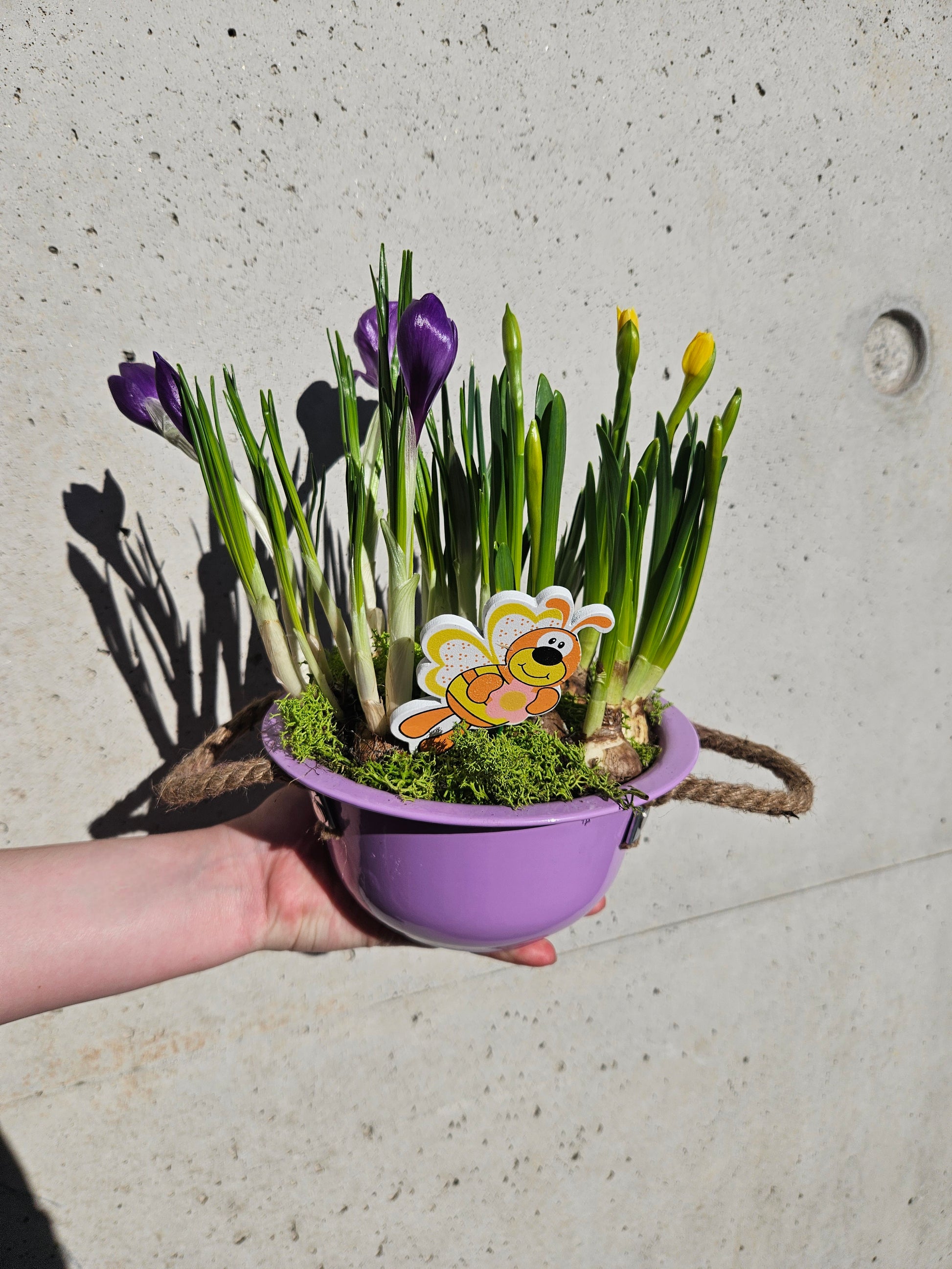 Jardin de plante d'extérieur avec des bulbes, crocus, jonquilles et muscari.
