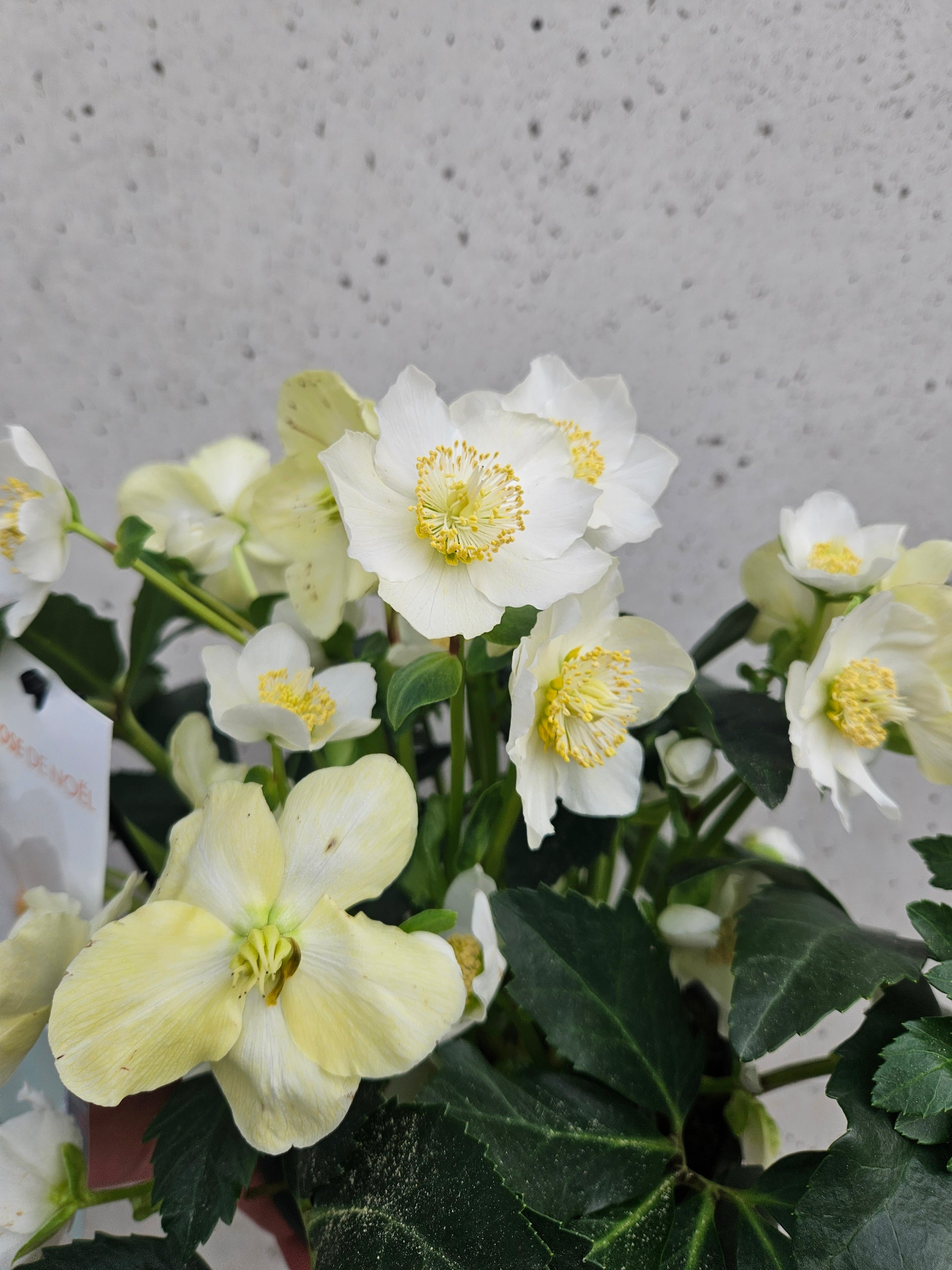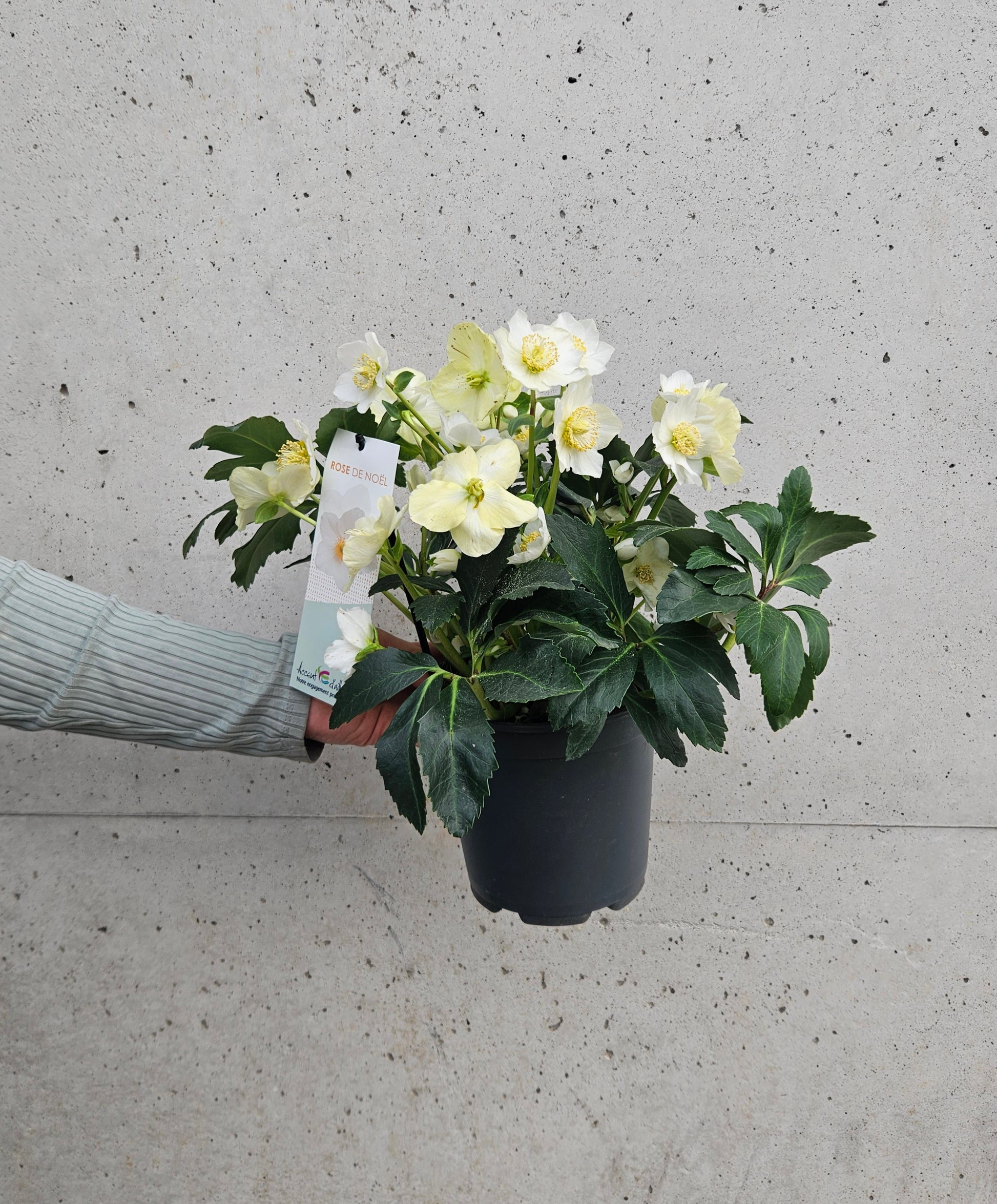 L'Hellébore ou Rose de Noël est une rare plante d'extérieur qui fleurie en hiver, très facile d'entretien, elle peut être accompagnée d'un cache-pot. (contenant pouvant changer selon l'approvisionnement)